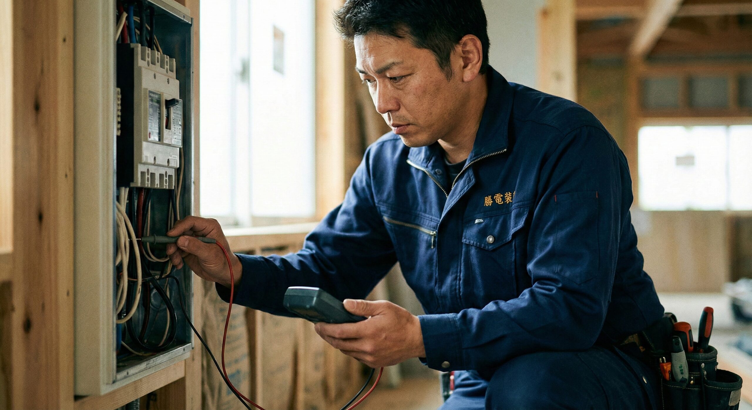 勝電装は、1990年の設立以来、地域に根ざした電気工事の専門業者として、皆さまの暮らしやビジネスを支えるお手伝いをしてまいりました。 新築・リフォームの電気工事から、エアコン設置・洗浄、オール電化製品の導入まで幅広く対応しています。